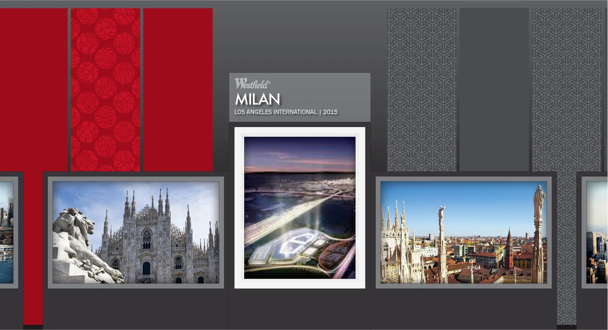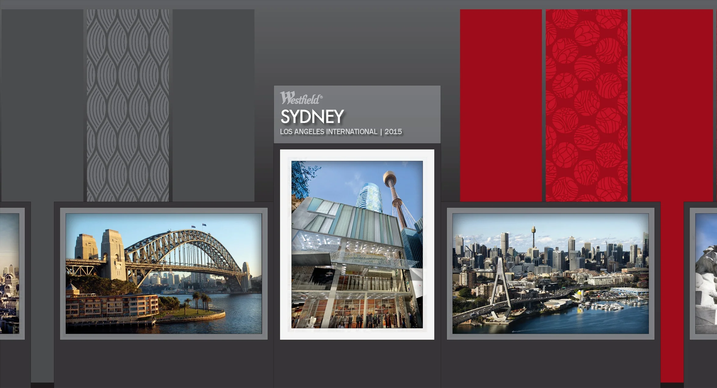 The US Properties were showcased on the left side of the ballroom (shown in it’s entirety in the schematic above) and the global properties were showcased on the right (close-ups shown below) bringing the full impact of Westfield’s worldwide presence to bear on discussions. This provided a persuasive setting for sales representatives to have meaningful and fruitful negotiations on-site.
