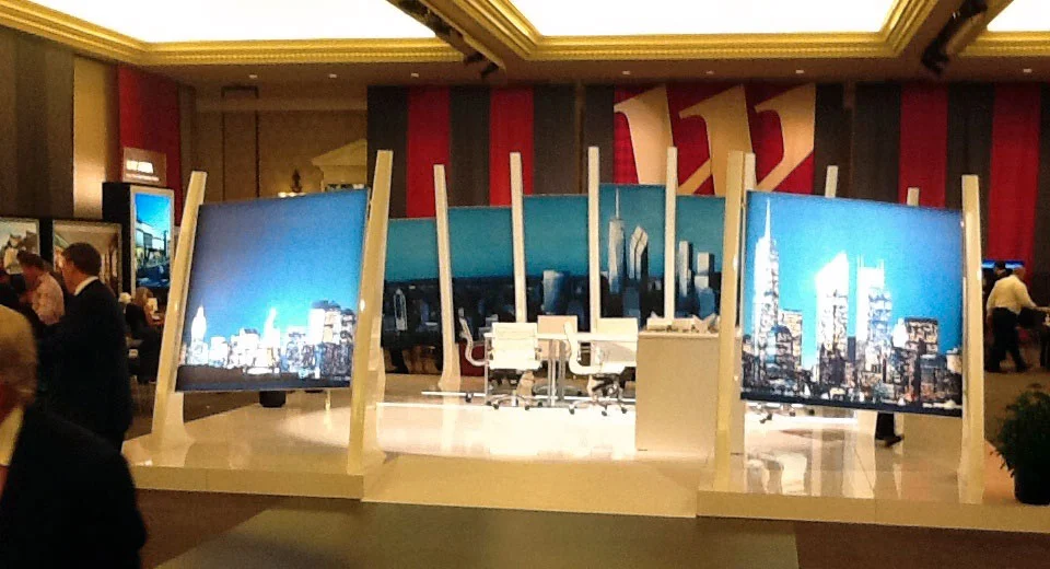 The unit itself was fabricated in a modular fashion to ensure the ability to amortize the cost over at least two years, as well as easy set-up and break-down. Each vignette was backlit giving a sophisticated look and feel to each property.